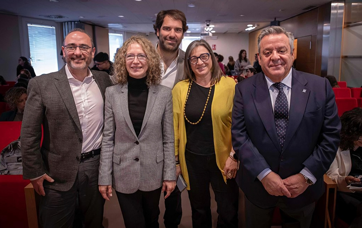 Rafael Martínez Cabeza de Vaca, Iberia Medical Head de Sandoz; Dolors Querol, Medical Affairs Director de Chiesi; Mónica Moro, responsable de Comunicación y Solidaridad de Menarini; y Julio Ancochea, presidente de Asomega y del Comité Científico de Red TBS-Stop Epidemias.