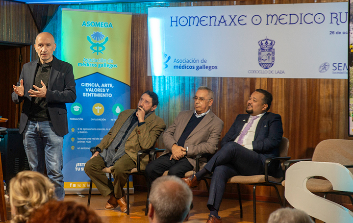 El salón de actos del Concello de Laza (Ourense), lleno hasta la bandera, acogió el acto de homenaje al médico rural organizado por Asomega con la Sociedad Española de Médicos Generales y de Familia (SEMG) y la implicación del propio Concello. Bajo el título "Un vínculo de proximidad y esperanza" se recordó la figura del médico de pueblo tradicional y se insistió en la exigencia de apoyar esta medicina de proximidad, tan necesaria hoy en los enclaves de población más pequeños como lo era en aquellos tiempos en los que el doctor llegaba a caballo a las aldeas.