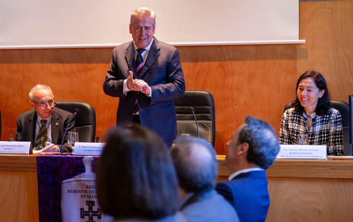 La encargada de pronunciar el discurso de presentación fue la doctora María José Alonso, quien definió al nuevo académico como “una autoridad clínica en el ámbito de la oncología, pero también un científico de talla internacional”. Añadió que “es sin duda un gallego de estirpe, de los que nunca olvida su tierra”, y que “lleva el nombre de Galicia por el mundo”.