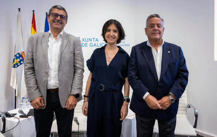El presidente de Asomega, Julio Ancochea, ha dado la bienvenida a los asistentes, acompañado por Paula Molina, subdirectora general de Humanización de la Asistencia, Bioética e Información y Atención al Paciente de la Consejería de Sanidad de la Comunidad de Madrid, y José Julián Díaz, gerente del Hospital Universitario de La Princesa.