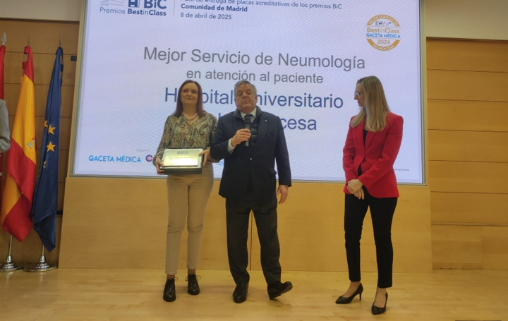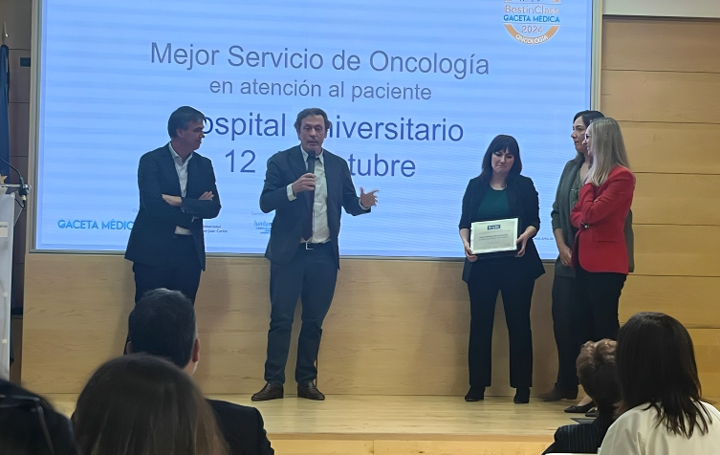 El Servicio de Farmacia Hospitalaria del Hospital General Universitario Gregorio Marañón, que dirige la gallega María Sanjurjo, ha sido reconocido por su labor en Oncología en estos Premios BIC. El premio lo recogieron Vicente Escudero, responsable del área de Oncología, y Camino Sarobe, responsable de calidad del Servicio, de manos de Laura Gutiérrez, viceconsejera de Sanidad de la Comunidad de Madrid.