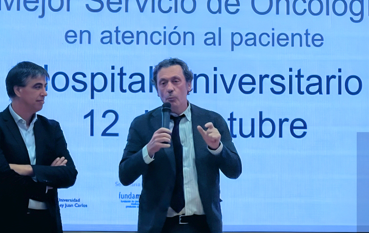 Luis Paz-Ares, responsable del Servicio de Oncología del Hospital 12 de Octubre de Madrid, ha recogido acompañado de parte de su equipo el reconocimiento para su servicio en estos Premios BIC. En el acto del pasado mes de noviembre en el que se conocieron estos premios ya dejó de manifiesto el carácter colectivo de su trabajo, que no podría plantearse sin la participación de muchos otros servicios y áreas del hospital. Aunque en aquella ocasión hizo hincapié en el papel de la Enfermería, clave en los cambios que ha afrontado recientemente su servicio.