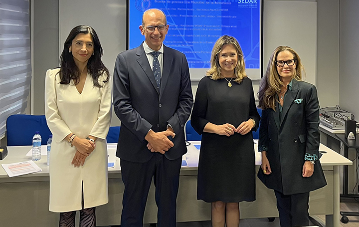 Marina Varela, secretaria general de la Sociedad Española de Anestesiología, Reanimación y Terapéutica del Dolor (SEDAR); su presidente, Javier García; Carina Escobar, presidenta de la Plataforma de Asociaciones de Pacientes de España; y Pilar Argente, vicepresidenta primera de la SEDAR.